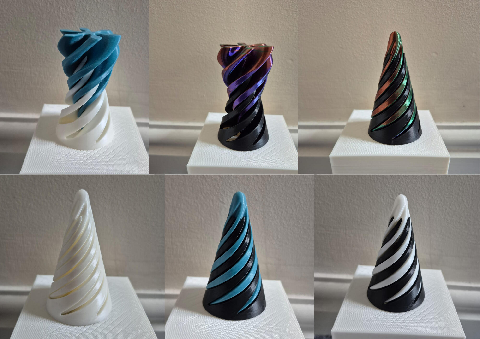 These spiral fidgets can mix and match and satisfyingly glide through each other! You can select 2 colours for each part of the fidget. Please include these colours in your order.